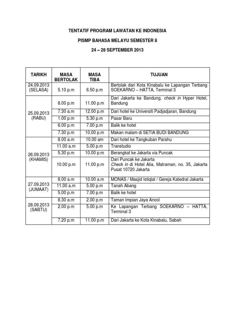 Related : Contoh Tentatif Program Lawatan : Sesi 3c masa 8.00 pagi ketibaan pelajar..