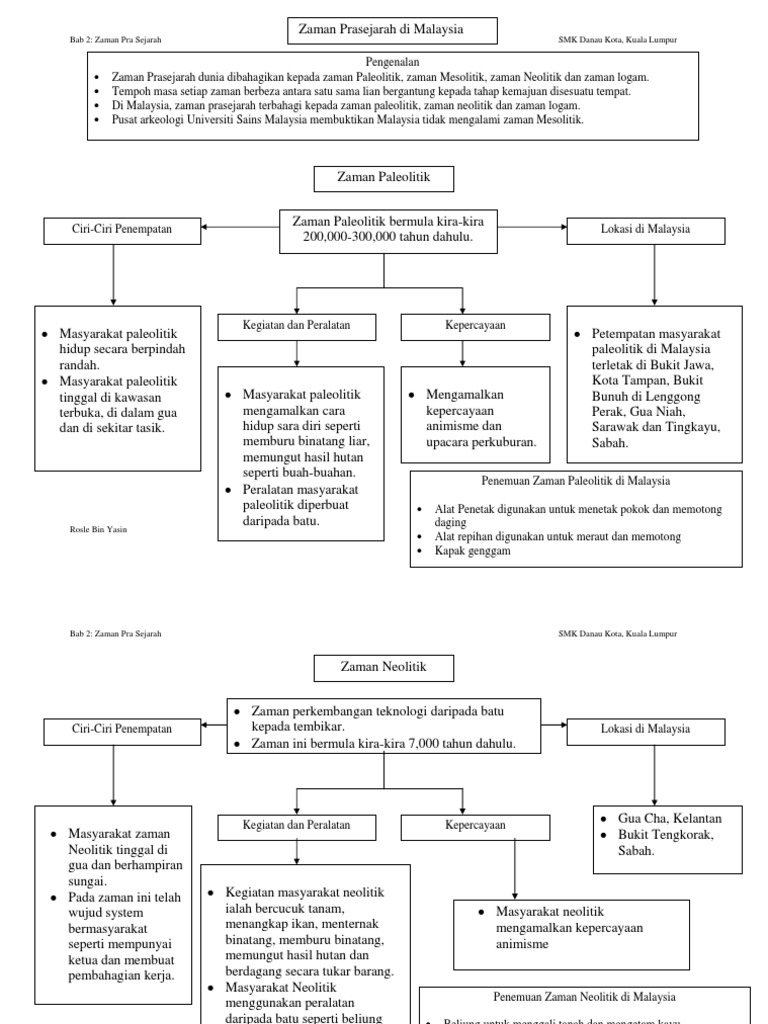 Penyelidikan dahulu mengatakan, wujud zaman mesolitik yang bercirikan kepada alat batu hoabinh seperti yang terdapat di vietnam. Dimanakah lokasi penempatan masyarakat zaman neolitik? Di malaysia, ahli sejarawan telah membahagikan zaman prasejarah di malaysia kepada tiga zaman sahaja iaitu:1. Start studying zaman prasejarah di malaysia. Zaman prasejarah merujuk zaman paleolitik, mesolitik dan neolitik.